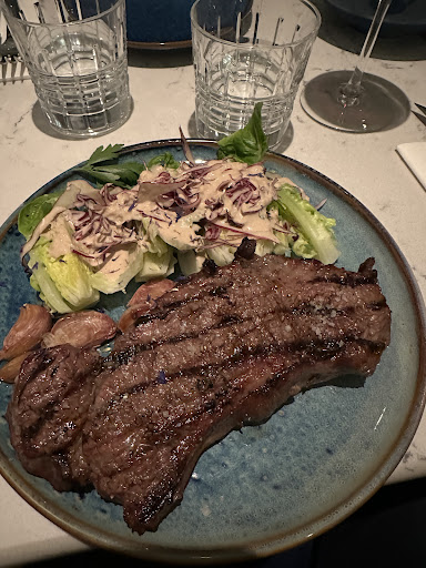Une fois la viande arrivée (avec beaucoup de patates ! ) elle était juteuse, bien saignante comme nous l'avions demandée, et servie avec des herbes aromatiques encore fumantes. J'ai vu des critiques à ce sujet ici, mais c'est une affaire de goût ! Pour ma part j'ai trouvé ça fantastique : la sauce et la viande avait pris ce petit goût de fumé caractéristique d'un bon barbecue, avec un arrière goût d'herbes.