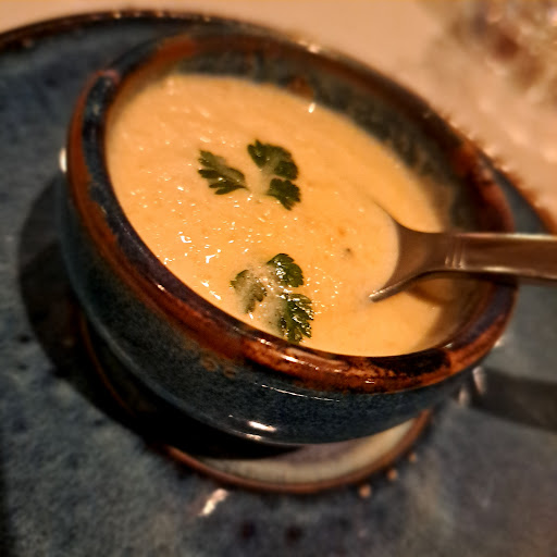Au vu des autres assiettes dans la salle ceci-dit, les portions me paraissaient être assez classiques pour un restaurant de ce type. Et nous avons même été offert un délicieux petit potage de saison au début du repas qui nous a bien ouvert l'appétit.