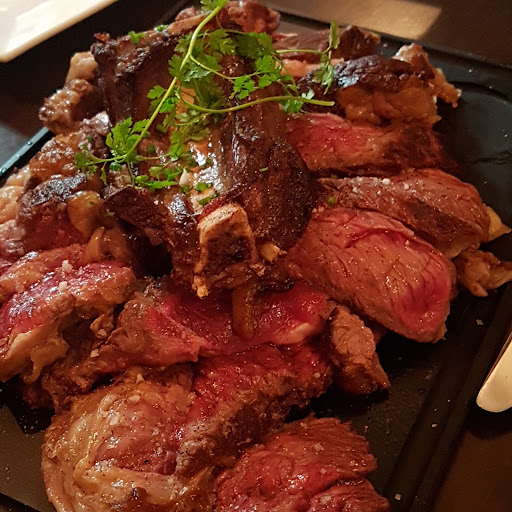 Lovely little bistro just inside the PĂ©riphĂ©rique. This was a Monday, not sure if it normally would be so quiet on other days. Maybe this is also a place that does more lunch business. Nice welcome, friendly staff able to speak passable English if needed. Good menu, enough choice without being too much. Shared the cĂŽte de bĆuf (rib steak, if it had had a longer bone it could have been called a tomahawk) with two colleagues, was served with green beans and a couple of sauces. A fourth tablemate had risotto with scallops (instead of with tiger prawns, they were out, and for the same price). All the food was very nice, and portions generous. Ok, the beef was an almost ludicrous portion... but it was cooked exactly to order, a lovely rare. When it arrived, presented on a board and chunkily sliced, all the meat was nicely warm. Very tasty! The risotto was also nicely presented, and tasted very good; the risotto and the scallops were cooked to perfection. The prices for all this were very reasonable (certainly for Parisian standards); âŹ37 for my share of the steak and a nice bottle of red wine we shared as well. The risotto was also reasonably priced at around âŹ18 or âŹ20.