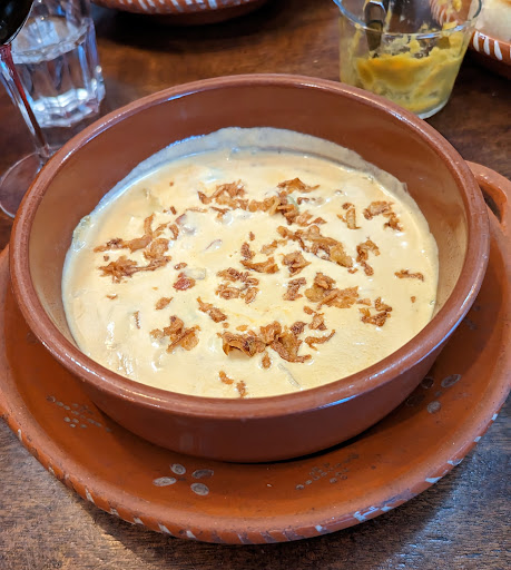 Be sure to come hungry, as the portions are generous. The complementary appetizer was intriguing, with flavors we couldnât quite place. I highly recommend the pastilla de confit de canard â a delightful balance of sweet and savory with an interesting mix of textures. For something lighter, go for the croustillant au cantal.