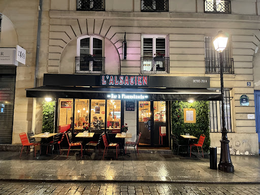 Read moreAccueil froid et dédaigneux de la part du gérant, heureusement légèrement rattrapé par la serveuse qui était assez prévenante. Comportement condescendant même envers son équipe qui a le mérite de rester malgré tout pro et avenante. Flammenkusch Münster : fromage plus présent au nez qu'au palais, un fromage pourtant censé être puissant qui était ici fade et clairement industriel bas de gamme. Flammenkusch N'Golo Comté : Jambon cru en surcuisson donc malheureusement super sec et sursalé. Très peu de comté, trop cuit aussi, finalement c'était des mini tuiles sans aucun fondant. Remarque générale pour les deux flammenkusch : répartition des ingrédients hyper déséquilibrée, obligés de refaire la réorganisation de la garniture sur les parts. La pâte était par contre fine et croustillante, bon point, bonne cuisson. Point positif, le vin. Un vin blanc mélange de 3 pinots que la serveuse a eu l'attention de nous proposer de goûter avant de le choisir : un Kentza, dans la gamme des cuvées exclusivement servies à "l'Alsacien". Fin de repas très désagréable, le gérant commençait déjà sa fermeture et son nettoyage de machines bruyantes à 23h alors qu'il restait plusieurs...