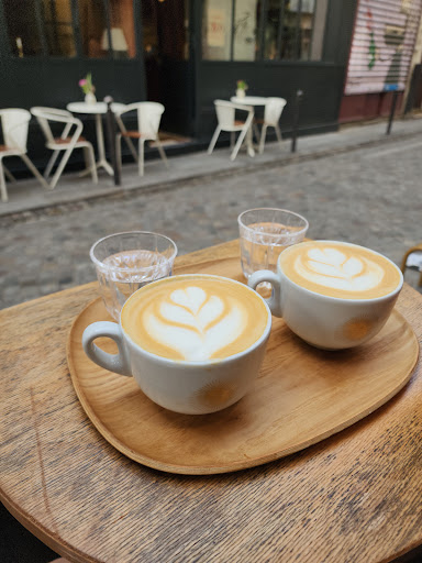 Best coffee in town! I work in a coffee shop/ roaster myself and am spoiled with good coffee everyday, so naturally I’ve been desperately searching for a nice coffee place for my time in Paris and was already lowering my standards to drink over extracted watered down coffee (God forbid) until I stumbled upon this place. It was magic. The place itself is quite small with a tiny outdoor seating area but I appreciated that even more, it looks homey and comfortable - cozy overall atmosphere, accompanied by the beautiful sound of someone, who knows how to steam milk! (incredible, all my prayers have been heard) The owner of the place was super nice and knowledgeable. Felt super welcomed and came gladly back.
