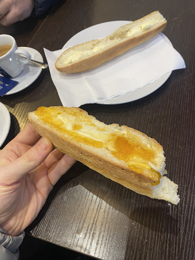 abbiamo fatto colazione due giorni di fila perché si trovava a pochi minuti dal nostro alloggiamento. Il primo giorno abbiamo pagato in €12 per quattro colazioni pane + burro e marmellata con due caffè espresso. Essendoci trovato bene visto che era il pane era anche molto buono siamo ritornati, con l’unica differenza che abbiamo preso anche una bottiglia d’acqua da mezzo litro che a nostra sorpresa ci è costata €5. Onestamente non ce l’aspettavamo, l’unico motivo per cui non ho dato di più alla...