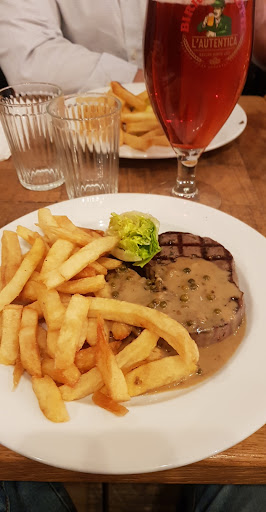 Tout y est dĂ©licieux ! Soupe courge et topinambours parfaite, avec filet d une trĂšs bonne huile d'olive et petits grains de sel Ă chaque cuillĂšrĂ©e, c'est assez rare pour ĂȘtre soulignĂ©, puis entrecĂŽte incroyablement tendre et trĂšs bonne sauce poivre, frites croustillantes et chaudes (c'est donc possible !)... Et du coup ben... : dessert ! CafĂ© gourmand de desserts faits maison et c'est un vrai bonheur : poire pochĂ©e crumble et chocolat noir, tarte aux pommes cannelle, et enfin gĂ©noise Ă la mangue et fruit de la passion... Tout est bon, et c'est en bas de chez moi... Le rĂȘve... Qui plus est le gĂ©rant est souriant, attentif et la musique variĂ©e...