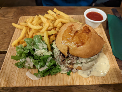 We started off with a Charcuterie Board which was very tasty, and then moved on to the burgers. I had the ‘Bourginon’, which was packed with slow cooked beef and topped with onions and blue cheese. It was absolutely delicious, and came with amazing fries and a little side salad (made me feel a tiny bit less guilty about eating this monster of a burger). My partner had the Cheese Burger and doubled up, so it was even bigger - he did struggle to finish it!