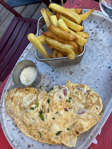 Then an omelette with fries and salad and a carafe of Brouilly.