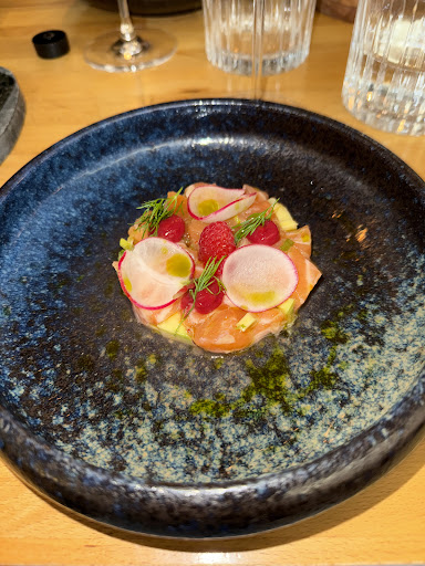 So we went here with high expectations, which weren’t really fullfilled. We choose the 5 course surprise dinner, for me no meat. As an appetizer we got a soup, Thai and Japanese inspired. The soup was nice, however nothing special. We got some bread and butter on the side, but the butter tasted strange (we later got some more butter, which tasted nice). As a first course we received a beet dish, which was in my opinion to ‘beety’ and nothing special. As a second course I received a dish with egg and some sort of jelly, which was too much of the same texture in my opinion + the jelly did not have much flavour. The boyfriend got a dish with fois gras, which he liked. As a third course we both got fish which was good, nothing to say about that. As a fourth course my boyfriend had pigeon, which had parts that were very undercooked, actually just raw (he asked for it to be cooked medium). He is not the type of person who would complain, but this was just too raw even for him. I had the coquilles which were nicely cooked. As a fifth dish we had a sweet hazelnut dessert, which again was ok. There were some things about the food which were just not good. However, we did really like the style of the restaurant and the sweet waitress we had. For 55 euros and with the good reviews we expected to be wowed, this unfortunately...