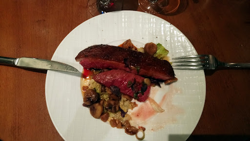 Autour, il y avait aussi un magret (belle pièce sans nerfs, cuisson parfaite! J'ai monnayé un échantillon contre une pomme de terre) et un filet de rascasse très bien cuit aussi. Au niveau des portions, ces deux assiettes étaient un peu justes à mes yeux (de goinfre) (surtout à 18€), j'étais contente d'avoir pris mon burger. C'est bon, tu vois, mais c'est cher pour ce que tu manges.