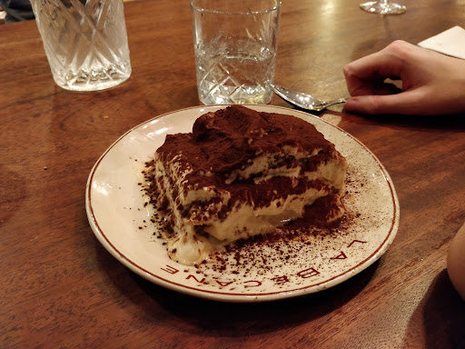 As if we weren't full yet, we went all the way with a tiramisu. Holy hell the size of this was not something we were ready for. We shared 1 plate with 2 and it still felt too much. It had a bit too much coffee in it for my likings, but the parts that were less bitter were a delight to taste. Sweet and airy.