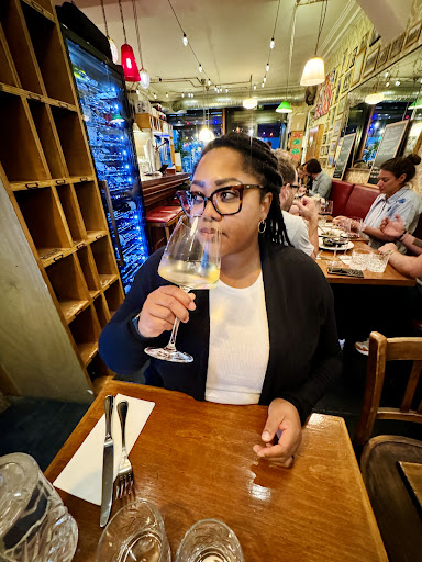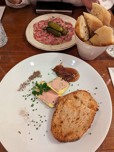 Upon entering the restaurant we were greeted by a friendly employee who quickly seated us. As a disclaimer, unfortunately I did not capture the names of the food that we ordered from the revolving menu; therefore, you’ll have to use the uploaded pictures to make an educated guess. We both ordered glasses of wine, a starter to share, two entrees, a cheese platter, and an alcohol digestif.