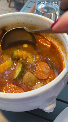 BOF BOF BOF. A éviter. cuisine très fade. addition salée et service très très discutable, juste correct. Déco ok. Poudre aux yeux. Aucun intérêt. 20 euros un couscous même pas copieux et sans goût : pourquoi faire ? Je développe : nous étions une bonne tablée. En fin de service les garçons ouvrent les fenêtres pour aérer , et nous signifier de partir, 22h30 et 5 degrés dehors. Merci... Attente assez longue après distribution des menus et même pas de proposition d'apéro. Service en soi très discutable, voire maladroit. A peine poli et franchement je suis pas bégueule. On nous a pas envoyé bouler mais pas non plus d'accueil sympa, et je demande très peu. Tout juste si on nous a laisser aller nous asseoir et attendre. Et donc le plus important la cuisine. Vue le titre je m'attends à un plat au minimum bon. Bah non fade pas de goût. OK viande bien cuite mais ni gout ni saveur, pareil avec les légumes. Pour des pros du couscous, ça invite à rester en manger à la maison. Je suis déjà allé plusieurs fois dans des tout petits restos de quartier méditerranéens qui ne payaient de mine et je me suis largement plus régalé pour au moins 2 fois moins cher. Là on a du réclamer plus d'ingrédients (légumes, raisins, semoule...). Les serveurs enlevaient les plats alors que je n'avait même pas terminé. Limite je reprends les plats de leurs mains. Honnêtement l'addition a été super salée, vin inclus, pour aucune raison !!! FAITES DES GROS EFFORTS SI VOUS LISEZ CES LIGNES LES PROPRIÉTAIRES OU GÉRANTS. Quant aux visiteurs, la rue grouille d'autres adresses, ne vous arrêtez pas là, ce serait une erreur... Très dommage. Ah j'oubliais l'acoustique qui est horrible là, carrément. Allez c'est juste une soirée à...