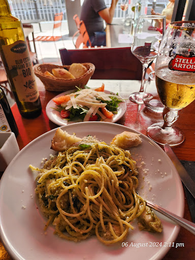It was a pleasure to dine at the aforementioned establishment, where the antipasti Basilicata provided a delightful start, generously serving three. The main course, Scaloppina al Gorgonzola, came highly recommended by Charles, our waiter, and did not disappoint with its balanced creaminess and well-paired meat and pasta. The chocolate tiramisu for dessert was a revelation, surpassing any variation I've previously enjoyed in London. The vibrant ambiance, coupled with Charles's exceptional service, contributed to an unforgettable culinary experience. I eagerly anticipate...