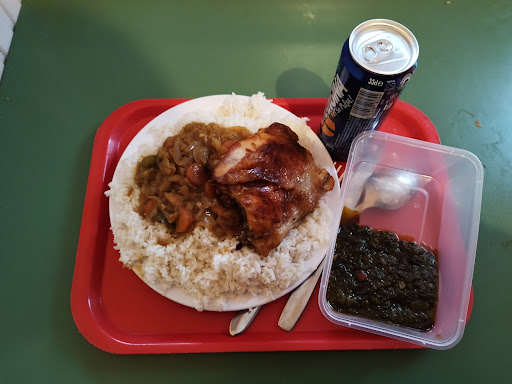 Read moreJ'ai entendu parler de la cantine j'ai donc voulu tester. La cantine ? Une cantine à l'allure de foyer. J'ai pris trois plats, donner dans un petit sac sans couverts sans serviettes, aucune proposition de boisson. Vous choisissez et hop vous payez. J'ai très moyennement apprécié que l'on puisse rentrer sans masque. Les lieux ne donne absolument pas envie de consommer sur place. Le tiep poulet ? Et bien que dire ? Ben... ce n'est pas le meilleur que j'ai mangé je peux le dire, celui-ci n'a rien de formidable. Une forte odeur de brûlé mais je n'avais rien de tel dans ma barquette. C'est du riz je précise quand même brisure de riz) à la tomate. Les légumes se sont fait très très rare dans ma barquette. Quelques morceaux de carottes et de tout petit morceau de carré de chou. Pas d'aubergine pas de patate douce sincèrement la saveur du tiep était pas au rendez-vous. Le poulet à ma grande surprise bien assaisonner donc avec du goût. Ce que j'ai moyennement apprécié c'est que l'on puisse rentrer sans porter le masque, commander à emporter rester discuter à l'intérieur. Les plats sont à 5 € les frites et les bananes frit à 3 € et quelque chose. Désolée je n'ai pas eu de tickets, je m'en suis rendu compte qu'après. Les portions sont généreuses faut le reconnaître. Plusieurs serveuse un caissier. Personnellement je n'y...