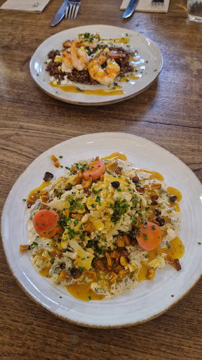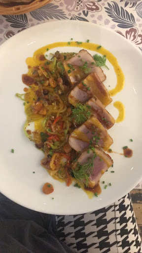 Plus sérieusement, excellente cuisine ! Les plats sont beaux, raffinés et riches en couleurs ! Une composition mêlant textures et saveurs ! Les aliments sont frais et les sauces une explosion de goût ! Bravo au chef pour toutes ces créations exquises ! Le service est irréprochable ! Vous pouvez déguster en salle où au bar ! La personne chargée du service est aux petits soins, souriantes et solaires ! Très belle équipe ! Lieu très original et sans prétentions.