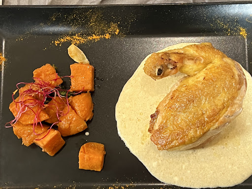 C'est un établissement qui fait restaurant le midi du lundi au samedi ; mais les soirs se font à thème ainsi que les dimanches. Donc une organisation par famille. Un très bon accueil alors que nous sommes arrivés très en retard. De l'apéritif au dessert tous est fait maison. Une très belle assiette pour chaque enfant différent des parents pour leurs données l'envie. Salade composée' tomates, feuilles de chaînes , et des jeunes pousses d épinards en entrée ; suivi de pommes de terre en robe de champ et une belle cuisses de poulet fermier grillés au bois. Au dessert mangue et fruits de la passion Saupoudré de chocolat oui tout les enfants ont mangé avec appétit. Pour les adultes rien à dire car chaque enfant qui mange de la sorte se trouve avec des parents détendue. Le service était dans un calme parfait .Les serveurs se faufilaient pour remettre et retirer les assiettes sans que les conversations ne s'arrête. .Pour les adultes, asperges accompagné de salade verte légèrement vinaigré en sauce basaltique ; poissons grillés accompagné de légumes en purée et sauce à la crème fraîche parfumé au céleri et salsifis 👌👌👌👍👍👍👍👍👍👍👍👍. Vin blanc, vin rouge et de l'eau d'evien et pierrier pour une bonne digestion. A la fin un accompagnement individuel pour la prise des manteaux. Hoooooo oui pour vous baptêmes de 40 personnes ou anniversaire allez y foncez.