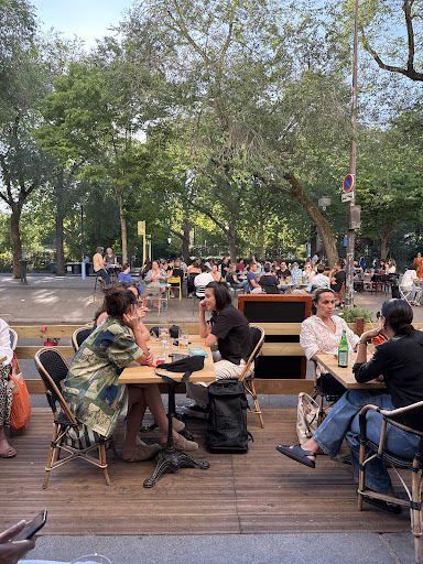 Read moreJ'ai eu la mal chance d'être temoin d'une scène choquante, ce soir sur la terrasse de ce restaurant. Le restaurant avait installé, de manière extrêmement précaire, un sound system, en plein milieu de la place et l'a laissé sans surveillance. Pour le décrire un peu, c'était deux grosses enceintes, placées en hauteur sur des piliers bancales (un pied touchait le sol l'autre pas), rien n'était fixé (câbles, enceintes, piliers etc) et un Mac book pro sur une petite table. Comme c'était la fête de la musique et que nous sommes à côté d'un parc, des enfants jouaient près de cette table et un pauvre petit s'est pris un des enceintes sur la tête. Au lieu de s'inquiéter du bien être de l'enfant, un serveur est sorti dans une rage folle et s'est, littéralement, mis à insulter la pauvre mère, se collant, de manière menaçante à elle (à 2cm de sa tête) comme pour débuter une véritable altercation physique. Ce que cet établissement n'a pas l'air de savoir, c'est qu'il est totalement responsable des équipements qu'il place sur la voie publique et des conséquences que ce matériel a sur les passants. Cet enfant aurait pu être gravement blessé par cette installation dangereuse et la réaction agressive, menaçante et déplorable du service devrait mettre en garde les familles qui souhaiterai s'y...
