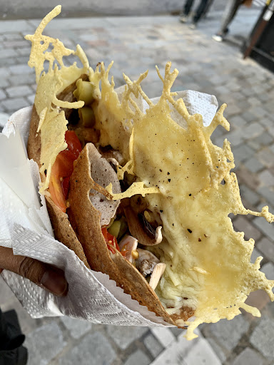 These crepes are GREAT. While it opens at 3 PM, the line to make crepes forms around 2:45, with plenty of people waiting for their crepe to be made. And with good reason! The person making the crepes is working like a master and makes wonderful delicious crepes in about 2-3 minutes flat. I ended up getting the Oriental crepe with chicken - and let me tell you that first bit with the bit of crusted hardened cheese and crepe... was divine. The crepe was just flat out delicious. Add to that we get a small cup of mint tea to top it off and it made for a delicious meal.