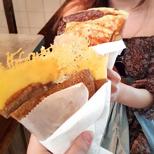 Read moreMy fiance found this place and it was an incredible find! The crepes were large in size and very affordable prices. I believe the ham savory crepe (jambon) was only €7.5. I loved that it had crusted parmesan as well. The sweet Nutella + Banana crepe was also very tasty and only €4.