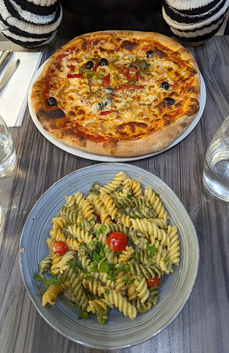 went here as a group of 6 people. we started ordering and immediately met the 1st issue - we couldnât order 2 pizzas and drinks, our servant told us to order more. i understand that the local is small and with a limited space, although Iâve never heard of such a rule and to be honest nobody ever told me to order more in a restaurant. quite weird. anyways, we chose the option to order a bigger size of one pizza (+5âŹ). after a short amount of time, we got our pizzas. and to be fair the âbiggerâ one was almost the same size as the normal one. so even though the prices arenât high, u may be forced to order more than u actually want to. pizza was great, crunchy and fresh. at the end of the day - if youâre in a pair/a group of three, and want to eat quickly and tasty - its a great choice. other than that -...