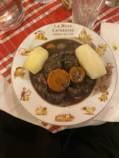 We understood why the restaurant had every seat filled. The beef’s tenderness was just right like the shoe on Cinderella’s foot. The sauce it was glazed in melted in your mouth like a fresh warm blanket with a tang that was truly alive. And the potatoes. Again, the texture. I wish I could explain it better but it just felt like they were given the precise time and temperature mix up to remind you that cooking truly is a science as well as it is an art. They brought bread both for the appetizer and for the entree which of course have not missed once since we have been in France. We used it to complement every centimeter of sauce left in that plate. The carrots and mushrooms couldn’t be forgotten either as it was a symphony.