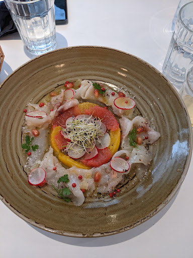 Read moreLe lieu est assez chaleureux et les assiettes multicolores donnent une touche originale. En entrée : le saumon fumé maison est vraiment très bon, moelleux sans être gras. Une texture et un goût parfaits. L’œuf poché sur sa crème de champignons est très savoureux également. Une belle réussite sur les équilibres. En apéro : les cocktails sans alcool sont agréables mais il y a trop de glace et l’acidité n’est pas très maîtrisés sur l’un d’eux. En plat : le poulpe est leur spécialité et cela se comprend car il n’est pas caoutchouteux et parfaitement cuit. L’encre dans les pâtes donne un style mais n’apporte rien, c’est même un bon moyen de se tacher. Les gnocchis sont réussis mais ça manque de peps. Un petit twist dans la sauce aurait permis de donner du relief à l’ensemble. En dessert : la tarte au chocolat était bonne mais malheureusement pas du jour ni de la veille car la pâte sucrée était toute molle. Etonnant dans ce genre d’établissement. Conclusion : pour une addition de 110€ à deux (sans vin, ni eau, ni autres) cela fait quand même assez cher et c’est dommage car on aimerait y retourner pour tester...