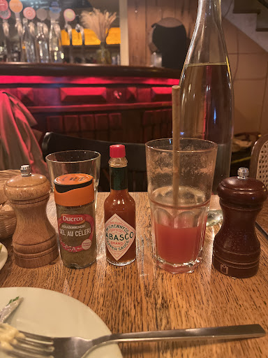 On mâa servi un verre de jus de tomate alcoolisĂ©, sans citron, avec une paille en carton. AprĂšs la premiĂšre gorgĂ©e, jâai demandĂ© un quartier de citron. On a alors posĂ© sur la table : une tranche de citron, du sel de cĂ©leri, du Tabasco, une saliĂšre, une poivriĂšre â et un sourire creux accompagnĂ© de : âTu as tout ici.â