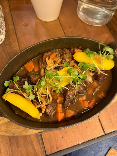 Having traveled through Lyon, Beaune, Dijon, and Auxerre, we had high expectations for Parisian cuisine. However, the beef bourguignon was a letdown. The sauce was thin and watery, the flavors were bland, and the meat lacked depth, which was surprising for a slow-cooked dish known for its richness.