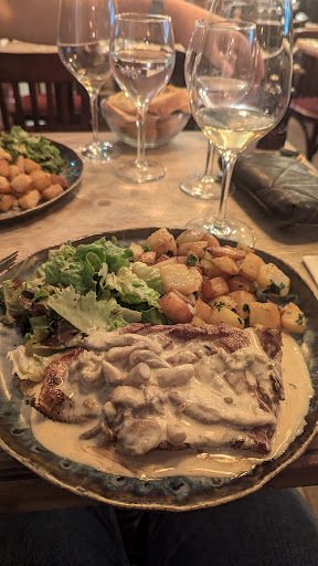 We came here for dinner during the week after looking for a french restaurant , I settled on this one after seeing the positive reviews and seeing the menu. The restaurant itself was really inviting and warm, it is a really cool location with it being an old pharmacy. They have a plethora of wines, and their food menu changes daily. We opted for poached egg in chorizo sauce and beef tartare for starters and both picked the veal for mains. Both were delicious and even the salad was lovely with a really tasty dressing. Only thing is that we didn't get a wine menu, and so didn't know the price of the wine until we paid which could be dangerous depending on how much you might order ! We had only one glass each, which cost €20 for both and was more than we wanted to spend for a glass of wine but we could tell it was more expensive wine so understandable.