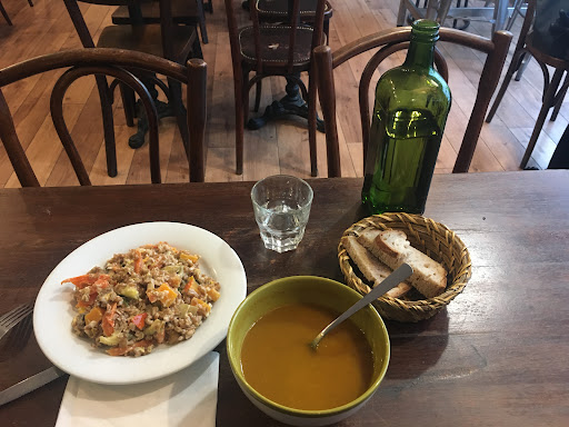 ENG Cool little place in a quiet street. Big and interesting veggi proposal! Not very clear the menu/price/proposal, but the staff are nice and helpfully! Daily Combo + dessert: €15 FR Ptt et jolie bio resto in à rue tranquille. Majorité des assiettes végétarien, tres bon! Menu, pris et possibilité de combinaison pas super clair, mais le staff est cool et gentil! Combo du jour + gâteau maison: €15 ITA Posticino interessate con una buona varietà di piatti vegetariani e bio. Menu giornaliero con proposte stimolanti; non molto chiari i menu e le combinazioni, ma lo staff è gentile e pronto ad aiutare! Piatto del giorno + dolce fatto...