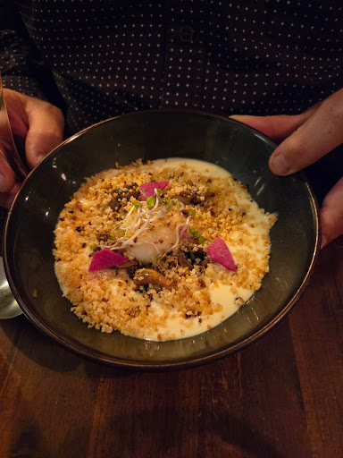 Read moreDon't get the hype. Service was super cold and unfriendly. The waiter's aunt sitting across from me was a lot more friendly. I came in right at 19h - not a soul in sight other than the aunt. I asked if they were open and the guy seemed super annoyed. The main door really isn't that obvious at all. Then I asked if I could sit (place was empty) and he's like "one thing at a time " lol like I'm a child. He's like "you can have the table for one hour " lol. Food was so-so. Way too small and bland for the price. I'm a fan of small menus but this menu literally has 3 options to choose from....and the waiter doesn't explain any of them. He also freaked out because I had my plastic water bottle on the table and put it on the FLOOR next to me lol. Yes I drink water throughout the day and sometimes I have water left - am sure not going to toss it. I guess my plastic bottle didn't go with the pretentious vibe of the place. Overall very unpleasant- would...