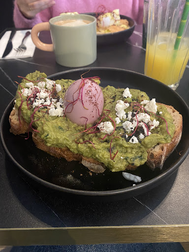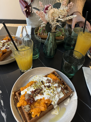 Came for the brunch as I am always looking for my favorite spot. Did the 32€ menu which includes a savory dish of choice, sweet dish of choice, a hot and a cold drink. I chose the avocado toast with salmon but found it a bit disappointing. It was pretty, but it had too much cumin spice in the avocado which overpowered the rest of the food, and the salmon with the cumin tasted a bit odd to me as a flavor pairing. The tiramisu brioche perdue however, was delightful and one of my top sweet dishes that I’ve had at a restaurant. Very unique and so good. The juice of the day was delightful, but the iced latte was very weak and mostly milk. My friend took the Korean waffle with beef and jt looked insanely good with a huge portion of meat. Overall, some things were a hit and others I wouldn’t try again. I would go back another time though and give some of their other menu items a try. Or maybe I’ll go back just for the brioche tiramisu ;) The staff was friendly and...