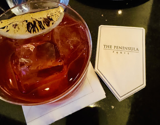 What's more amazing than an historic bar within an historic palace? After passing the bright and luminous grand lobby of the Péninsula, you may reach a contrasting rich, luxurious wooden, golden and ornamented décor. With the addition of the lovely covered terrace that stretches along the imposing entrance to the hotel, this is the fundamental sophisticated and cozy ambiance that awaits you at the Bar Kléber. Although it makes pictures quite a challenge, the dim lights really brings the mood to a chill and pleasant character. After a discreet welcome during an already advanced night, I was seated in the corner leather chair with full view on the bar action and the two majestic and gigantic albino peacock paintings, I hope it was intended as a nice wink to the other rooftop restaurant-bar called L'oiseau blanc. I definitely saw it as such. However, like other of my usual highly specific and odd questions, I was left unanswered. The only time we were addressed was for taking our order. The rest of the time, the staff was swirling and posing behind the bar. As professional as they were, I wish I could've been introduced to the head bartender or bar manager. I wish I could've found out if they truly use the Champagne Deutz special edition specially made for the Peninsula, the inspiration behind the cocktails or what was their favourite thing about the bar, for example. I understand a distant and inconspicuous service approach is a talent and advantage in many cases, but i'm more curious than normal people. In any case, we had a great time and great cocktails. The cocktails list is quite classic and classy in style with intricate combination of standard alcohol with fresh ingredients. I especially liked the Pen Fizz #2 (Timul pepper infused vodka, lychee, rose and raspberry cordial and of course Champagne). They were all fun and definitely tasteful. What a great way and place to meaningfully spend...