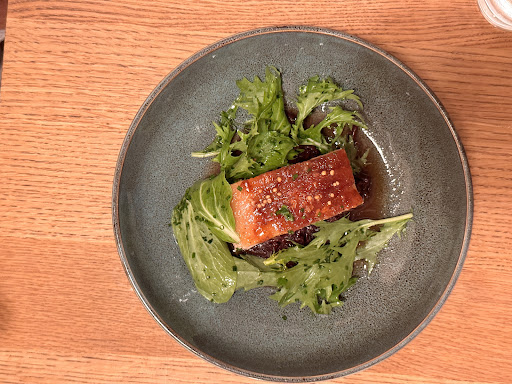 Good food but inconsistent (very good appetizers and desserts, average mains). Nice space and vibe. Overall, slightly disappointing for a Michelin-listed restaurant on the expensive side (48 EUR for a 3-course meal, although wine is well-priced), but still...