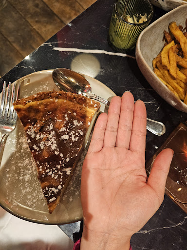 Le repas terminé, le serveur nous débarrasse et ne prend pas la peine de nous ammener la carte des desserts. Au contraire, il retourne ranger ses tables et c'est a nous de lui demander. Il prend meme pas la peine de nous apporter la carte et enumere les desserts. Pas le temps de vraiment choisir.