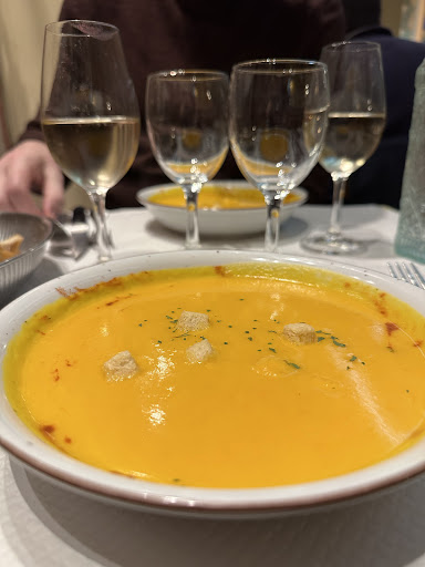 Went for dinner here based on proximity to the hotel and seemingly good reviews. Upon arrival, in an empty room we got offered a table crammed between the kitchen and staff door which we refused. The waiter reluctantly gave us another table. The pumpkin soup was completely bland, adding tons of salt made it somewhat edible. We could also see and hear it getting warmed up in a microwave in the kitchen, makes you think how fresh it actually was.