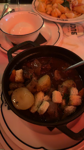 So I’m visiting Paris and I decided to try this place after I left another restaurant right across the place. Amazing amazing read my review on that one so the four of us went and I ordered the beef stew. My husband ordered the chicken. My girlfriend ordered the steak and then her husband ordered the shell pasta. Let me start with the place is overcrowded they do not have air conditioning. They have a fan it’s August 16, 2025. Everyone is cramped up so we decided to eat inside where there’s a fan after that the waiter total with an attitude which I’m not used to this on top of that was rushing us to place the order after we place the order the food came the chicken was dry. The leg part was no flavor smelled like burnt chicken bone. My girlfriend didn’t even finish her steak. It was like rubber. Her husband‘s pasta was dry. No taste. He had to put Tabasco sauce on it and order it for it to taste somewhat of a pasta my stew. Supposedly it is a slow cook beef chuck roast that’s cooked in wine for hours. It’s supposed to melt I had to use a knife, a fork and a spoon to pull the meat apart. I couldn’t even eat it so after getting a bill over $100 we’ll never go there again so don’t fall for the Hipp that you know the hype that everyone is sitting there and it looks so amazing and you wanna go eat now this place had a 3.9 I was hesitant. I gave it a try if I was able to give it a...