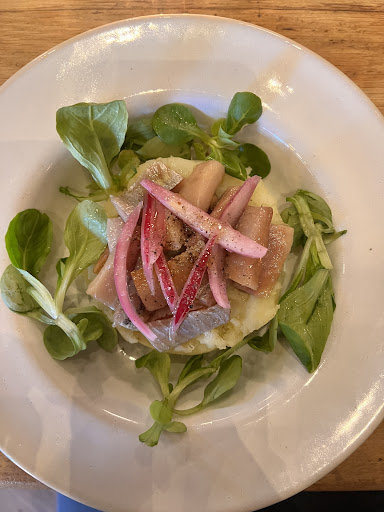 Read moreWe had a very enjoyable meal here on our 25th wedding anniversary. We were staying locally and the hotel recommended it. It's quite small, five choices for each course and the food is excellent. We had organic egg with lardons; black truffle with spelt (so like a risotto); bream with kale and grapefruit and molluscs; and pigeon. Puddings were ossy iratu with cherry compote and rice pudding with salted caramel. Apologies for my descriptions which don't list all the ingredients or do justice to the flavors or the cooking, which was excellent. The staff were good, especially the maitre D who was an excellent advisor, both knowledgeable and enthusiastic. He was so eloquent that the couple at the next table, who were from Minnesota, asked to see the bottle and we got talking to them for the rest of the evening. So good for food, wine, staff and conversation. And not expensive either. Everyone should live close to somewhere as...