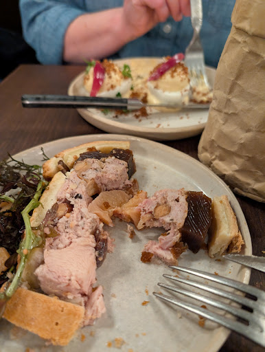 Read moreNachdem mich die Reservationsapp per mail explizit um eine Berting bittet, voilà: Inkompetenter, aber sehr arroganter, angespannt wirkender Service. Speisen zwar aus durchaus hochwertigen Zutaten und trotzdem misslungen. Wenn die Portionen derart überladen sind (in Menge und Geschmacksrichtungen zugleich) stellt sich kein Genuss ein (bei oeufs mayo als Vorspeise bekommt man z. B. ohne Vorwarnung gleich zwei Eier mit , leider viel zu salziger, mayonaise). Da hilft auch nicht, dass der zweite Gang des Mittagsessens im halb leeren Lokal ohne Entwchuldigung aufgrund eines Fehlers im Service erst eine Dreiviertelstunde nach der Vorspeise gebracht wird. Die Lust war uns längst verfangen. Auch der Hauptgang: zu viel, Teller zu voll, zu fettig, zu überladen. Die Naturweinauswahl ist banal bis mittelmässig, den Preis nicht wert und der an sich sehr schöne Jugendstilsaal ist viel zu eng bestuhlt. Die Köchin richtet die Speisen hinter der Bar an, mitten im Geschehen, was ja cool sein könnte, interagiert aber nicht mit der Kundschaft und zeigt auch kein Interesse an deren Feedback. Insgesamt wirkt der Laden sehr hochmütig, ist aber dann nicht auf der Höhe. Lacht uns ruhig aus wenn wir Eeich ehrliches Feedback geben, es war durchaus konstuktiv gemeint. Danke und...
