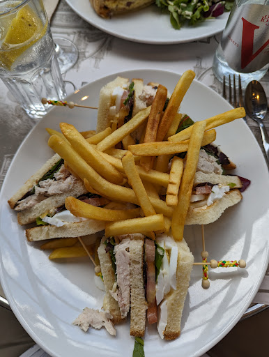 Had lunch at this place in Paris, France. This place was busy for a lunch hour looked up the rating on Google and seen it had a good rating so we went there. I ordered the chicken club sandwich(I love club sandwiches), wife and sister in law had the quiche Loraine. Also had the French onion soup for a starter. Always wanted to try French Onion soup from France. I have been making it for years. The soup was really good and I do recommend this, comes with sliced and toasted baguettes on top with melted cheese which I am assuming is provolone. My club sandwich had hard boiled egg on it which I found out I am not a fan of egg on a club sandwich. The fries where decent. Wife's quiche looked amazing. I have been making quiche Loraine for Sunday brunches for years and I couldn't wait to see one from France. Looked really good. The service was top notch and I wish I could take some of these servers back with me to U.S. He was fast, funny, and was always ready for what ever we asked of him. I should of took pictures of the receipts then I would have had his name. I would recommend just maybe not get something as boring as I did. A club sandwich. Oh and the peach tea is amazing must try that!