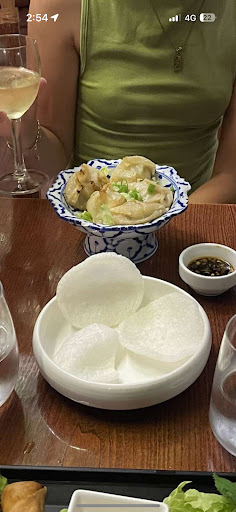 The service was pretty cold. At some point, they gave us Prawn Crackers but then took them away without asking after we'd eaten only one.