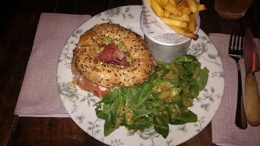 Read more“Ouí” to this place. The salmon (saumon) bagel and pastrami bagel sandwiches were just the right things for a mid day snack. The place is tucked away somewhere there are no crowds of people trying to sell you things or insta-tourists taking photos for the followers. As a couple of no-french-knowin’-English-speaking tourists, this fine establishment was our “just pop-in and check it out” kind of place. We weren’t starving. The portions are perfect for those in-between moments if you could use a light meal before continuing your adventure through Paris - also, very relaxing and inviting. Staff are friendly (they speak English). Enjoy the cozy feeling and the spread of taxidermy’d aviary throughout the room. Malbar and...