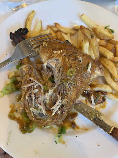 Things started out ok, snobby waiter (kind of expected… Paris), the cute little side walk bistro; very French. We thought we were off to a pretty good start the champagne was great and our first try of escargot went well. The escargot was delicious, far better than expected. And we must have picked the wrong menu items… my husband ordered sausage. He got some sort of offal hahaha, and I ordered chicken; what I received must have been drying out in an oven for a couple of hours. I tried to pick the few morsels of chicken off the bone that weren’t withered and dried to a crisp, but there wasn’t much. The chips were...