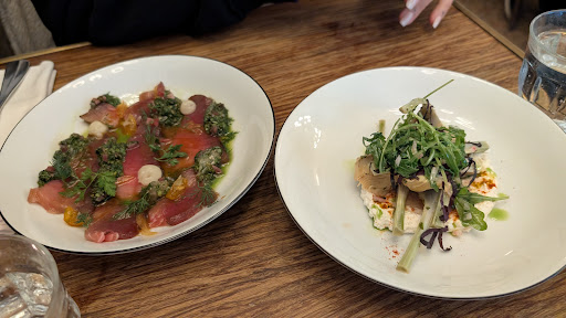 Read moreGreat attention to detail and creative approach. Food was quite good, a little on the dry side (but I love sauces). Very well priced and great quality. Was hoping to try one of their pastas, but I will come back. Staff was super attentive and selected excellent wine. The light Grenache Syrah was chilled perfectly and an excellent pairing. faux filet was perfectly cooked and the crudo was very fresh. Filet served with green beans and cherries which was a great mix I’ve never had before. They serve bread from one of the best bakeries in town, ten belles, with fresh sea salted butter. Nice simple fresh design, wish a little bit more of a vibe, but would still...