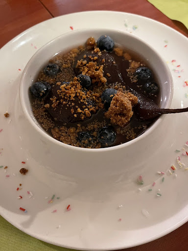 The dessert looked great, but the cafoutis was soggy and for some unknown reason peppery? Strange. And there were cherries in their. Yum! Minus cracking my teeth on the pits that hadn't been removed..