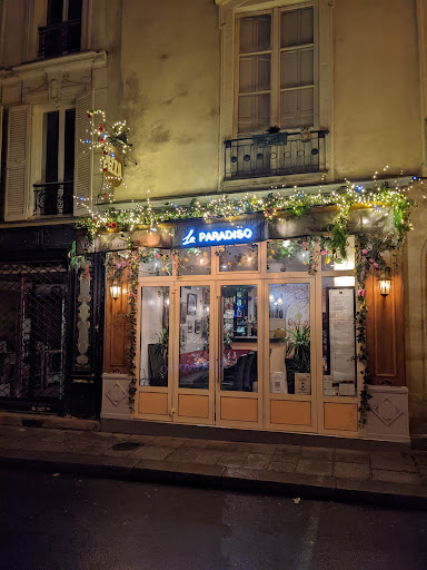 Read moreWe’re American tourists from south Florida who have been to Paris 11 times-we love the art, cafes, discos, people & food. Our first day here on this trip(we always stay at a neighborhood air B&B) we ventured out from our apartment on Isle Saint Louis & found this gem a few steps away-Le Paradiso. Attracted by its beautiful exterior, we checked out the menu in the window & wer drawn in. I am a vegan but on vacation from work & my normal diet. I was intrigued by the “Burger Italien” especially the scamorza cheese listed with its ingredients(which i had never heard of). I ordered that & my wife ordered the “Pavé de saumon grillé, crème à l’aneth, légumes frais”. She said it was the best salmon shes had in Paris. I was overwhelmed by the melt in your mouth delicious, juicy, first bite of this burger! I finished every gram of this savory mouth watering Jimmy Buffet cheese burger in Le Paradiso. The fries were perfectly crispy, fresh, & seasoned. We’re here for 9 more days & i can’t wait to sample the next item on their eclectic menu! BTW-service was friendly, inviting & superb. A must stop on your...