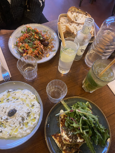 Had some time to kill before attending a concert, we found this spot nearby and I'm so glad we did! We went right around 5:30 and basically had the whole place to ourselves. But it was still a fun and lively atmosphere with staff and guests mingling, it made it feel cozy. I know if I lived in Paris I would come to this place often! We had the Thai Salad dish, the House Tzatziki and the Grilled Halloumi with a basket of bread. We each had a cocktail and our bill was still under 50 euro! Can't beat that!!! Everything was delicious, not a crumb left at the end of the meal. If you find yourself in the area,...