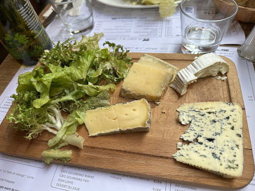 I had a cheese plate. My general fantasy in life is to eat cheese in Paris and in this case the cheeses themselves were a bit of a let down. Not as flavorful as we wanted. Not our favorite cheeses and not much of an assortment.