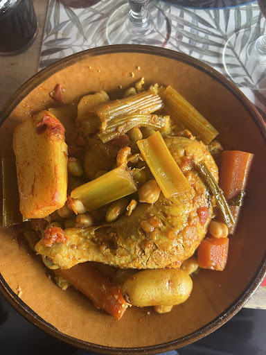 Read moreFound this place in an Easyjet magazine. Although it's just round the corner from Sacre-Cœur, it's not half as touristy as Montmartre. Quite small, but there were only two of us and we arrived at the beginning of lunch (12:15 or so) so we were able to get a seat at the front. We both ordered chicken tagine, which came with a small helping of couscous, allowing the tagine itself to shine. It was delicious - tender chicken in a spiced sauce packed with green beans, mushrooms, potatoes, carrots, olives and the odd bit of apple. Really filling and tasty, and good value too. Menu isn't very descriptive, though - you might want to check if you have allergies, because everything is simply listed as "chicken couscous" or "chicken tagine". Quick service, too, and the mint tea...