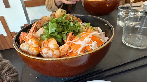 Read moreRead moreJe n’ai malheureusement pas vraiment apprécié le restaurant. Nous avions une réservation pour 19h45 nous avons été placé directement ce qui est super mais nous avons attendons jusqu’à quasiment 20h30 pour les plats. (Ma belle sœur et moi nous avons partagé une entrée ce qui fait que les deux autres personnes avec nous n’ont pas pu mangé jusqu’à 20:30. Le plat — curry de crevette.. très très moyen voir médiocre. Les poivrons bien trop encombrant dans l’assiette et bien trop gros. On ne sent pas du tout le lait de coco. Le riz est servi dans une sorte de verre à côté très peu pratique pour manger. Ma mère qui avait pris un poulet citronnelle n’a même pas fini son plat (tellement sec qu’elle a faillit s’étouffer). Nous avons quand même tenté de partager un dessert (banane tapioca) honnêtement fait le chez vous c’est bien meilleur. Encore une fois ca arrivé dans une présentation ba sans présentation en fait, dans un verre. Une bouillit de lait de coco cette fois avec plein de perle de tapioca collante donc pas bien faite et quelques bananes qui se perdent. Franchement sans goût. Dommage. Je ne...