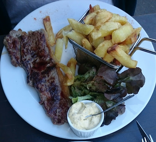Read moreWe had booked prior to arrival, which was as well as it was busy. We were clearly the only English people in the bistro but this only added to the experience as we felt very welcome. The staff could not have been more friendly and efficient. We both chose entrecotes which were cooked to perfection and delicious. We had a beer each and also chose a bottle of Brouilly which was really lovely. At the end of our meal our waiter gave us a complementary shot of amaretto and pineapple juice. An absolutely perfect evening. We returned for breakfast on our last morning which was equally good. Highly...